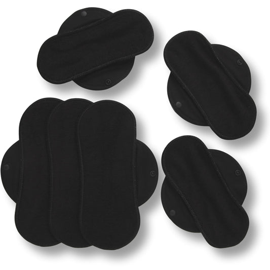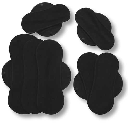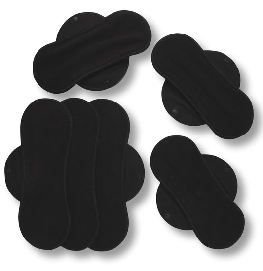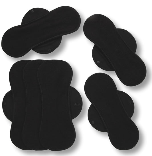 Reusable Cloth Menstrual Pads 7-Pack All Sizes (S, M, L, XL) - black wings