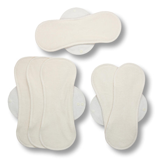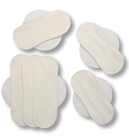 Reusable Cloth Menstrual Pads 7-Pack All Sizes (S, M, L, XL) - white wings