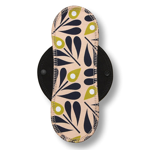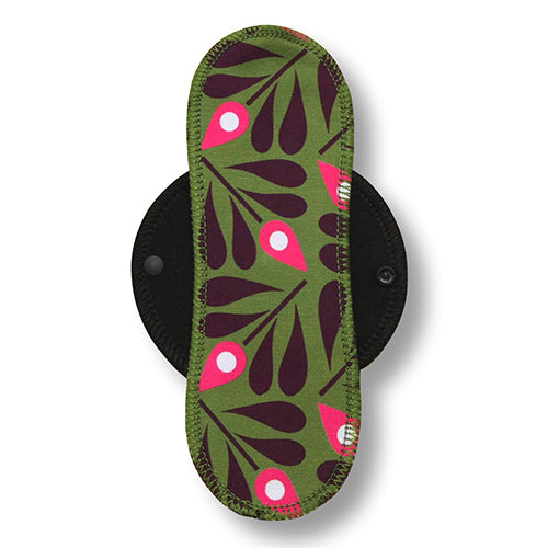 Reusable daily panty liners in size M are meant as daily protection against vaginal discharge during ovulation or spotting. They DON'T have a WATERPROOF layer, so they are NOT suitable for use during menstruation.