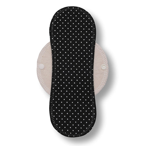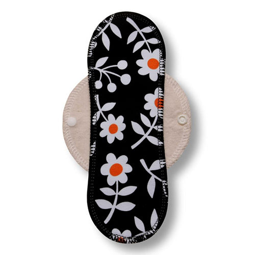 Reusable daily panty liners in size M are meant as daily protection against vaginal discharge during ovulation or spotting. They DON'T have a WATERPROOF layer, so they are NOT suitable for use during menstruation.
