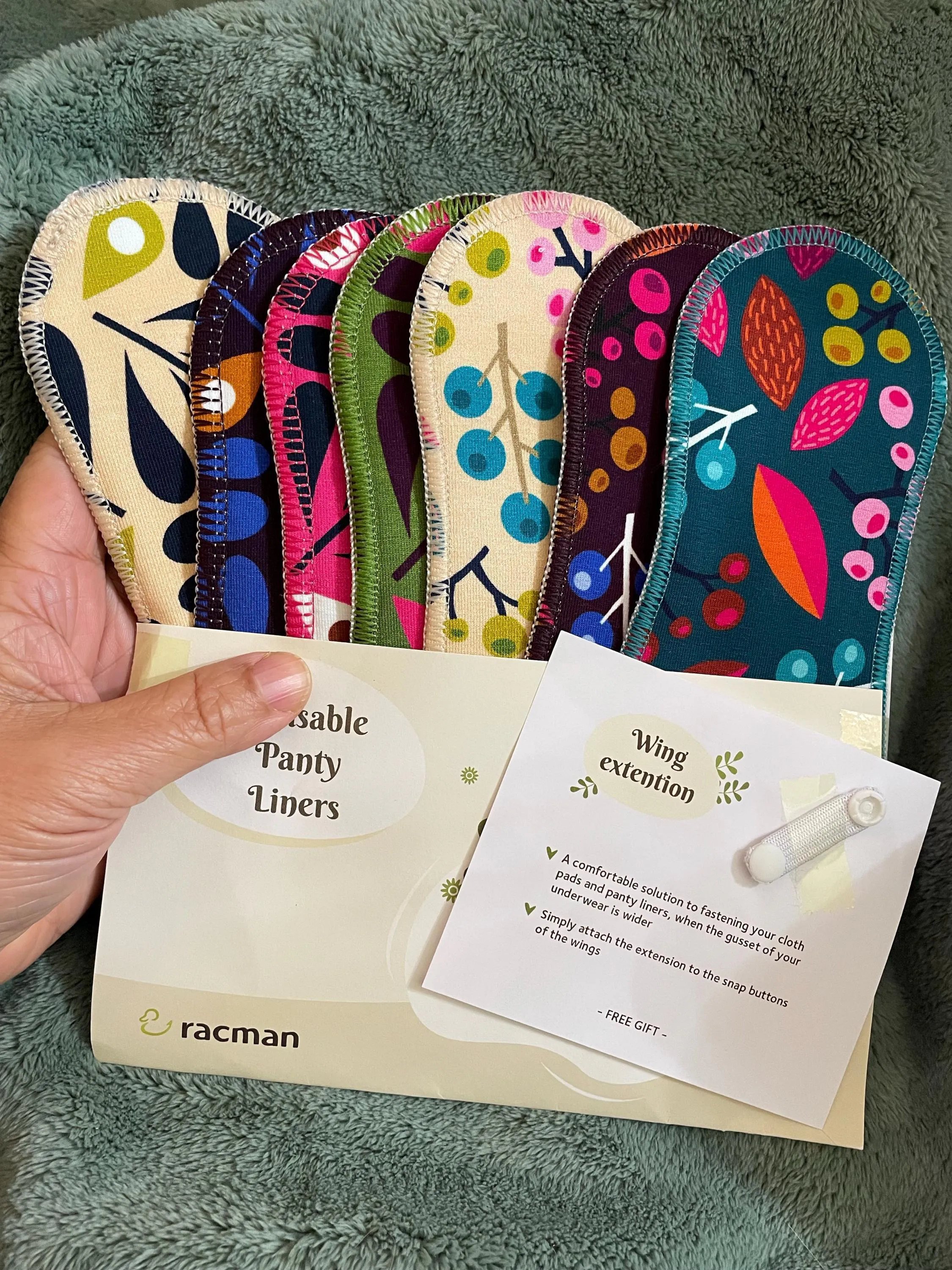 This Racman Pack includes 7 Reusable TANGA Panty Liners: