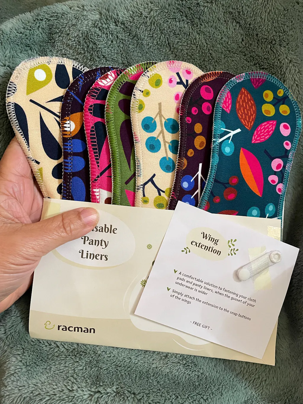 This Racman Pack includes 7 Reusable TANGA Panty Liners: