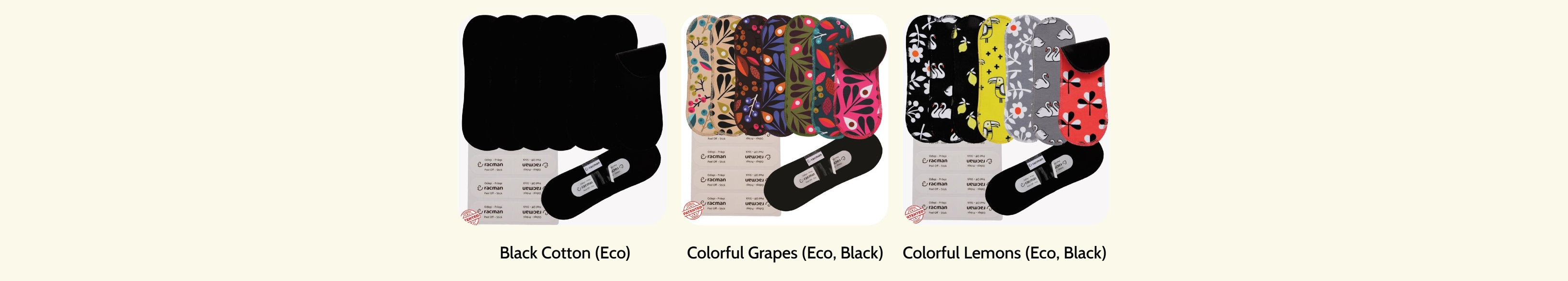 This Racman Pack includes 7 Wingless Reusable Panty Liners: